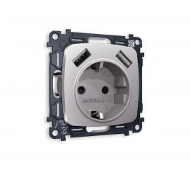 Комплект механизма розетки 2USB A+A 18W (быстрая зарядка) с/з Ambrella Volt Omega MO509010