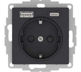 ATLASDESIGN РОЗЕТКА 16А c 2 USB A+С, 5В//2,4А//3,0А, 2х5В//1,5А, механизм, КАРБОН