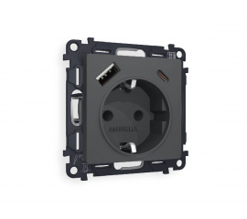 Комплект механизма розетки 2USB A+C 20W (быстрая зарядка) с/з Ambrella Volt Alfa MA910010