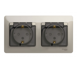 Розетка моноблок в две монтажные коробки Glossa, со шторками, с крышкой, с заземлением, двойная, винтовые клеммы, молочный