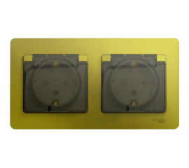 Розетка двухместная Systeme Electric GLOSSA, скрытый монтаж, с заземлением, с крышкой, со шторками, фисташковый