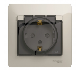 Розетка Systeme Electric GLOSSA, скрытый монтаж, с заземлением, с крышкой, со шторками, молочный
