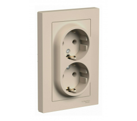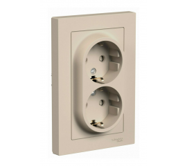 Розетка двойная Systeme Electric ATLASDESIGN, скрытый монтаж, с заземлением, песочный