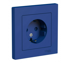 Розетка Systeme Electric ATLASDESIGN, скрытый монтаж, с заземлением, со шторками, аквамарин