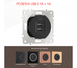 Розетка USB 2.1А+1А Arte Milano 202.46-1.black