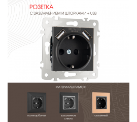 Розетка с заземлением, шторками + USB Arte Milano 203.47-1.black
