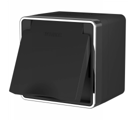 Розетка влагозащищенная с заземлением, с защитной крышкой и шторками Werkel Gallant черный/хром W5071235 4690389164637