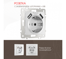 Розетка с заземлением, шторками + 2 USB Arte Milano 206.47-1.silver
