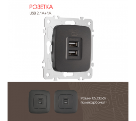 Розетка USB 2.1А+1А Arte Milano 205.46-1.black
