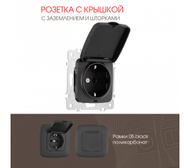 Розетка с заземлением, шторками и защитной крышкой Arte Milano 205.41-1.black