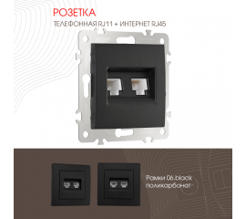 Розетка телефонная RJ11 + компьютерная RJ45 Arte Milano 206.44-1.black