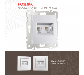 Розетка телефонная RJ11 + компьютерная RJ45 Arte Milano 205.44-1.white
