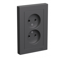 Розетка двухместная Systeme Electric ATLASDESIGN, скрытый монтаж, без заземления, со шторками, базальт