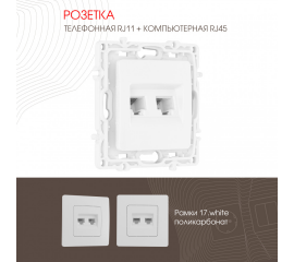 Розетка телефонная RJ11 + компьютерная RJ45 Arte Milano 217.44-1.white