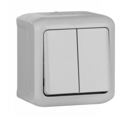 Выключатель двухклавишный Legrand Quteo 10A 250V серый 782332