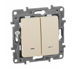 Выключатель двухклавишный Legrand Etika 10A 250V с подсветкой слоновая кость 672304