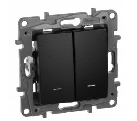 Выключатель 2-х клавишный с 2-х мест (переключатель) с подсветкой, антрацит