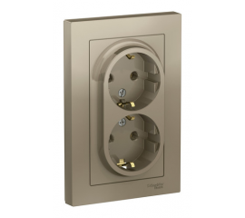 Розетка двухместная Systeme Electric ATLASDESIGN, скрытый монтаж, с заземлением, шампань