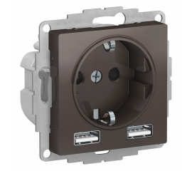 Розетка с USB Systeme Electric ATLASDESIGN, скрытый монтаж, с заземлением, мокко