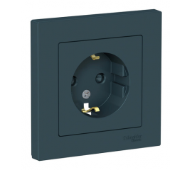 Розетка Systeme Electric ATLASDESIGN, скрытый монтаж, с заземлением, со шторками, изумруд