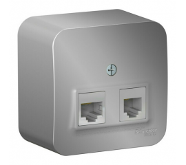 Розетка телефонная+компьютерная RJ11+RJ45 Systeme Electric BLANCA, открытый монтаж, алюминий