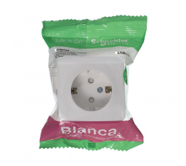Розетка Systeme Electric BLANCA, открытый монтаж, с заземлением, со шторками, белый