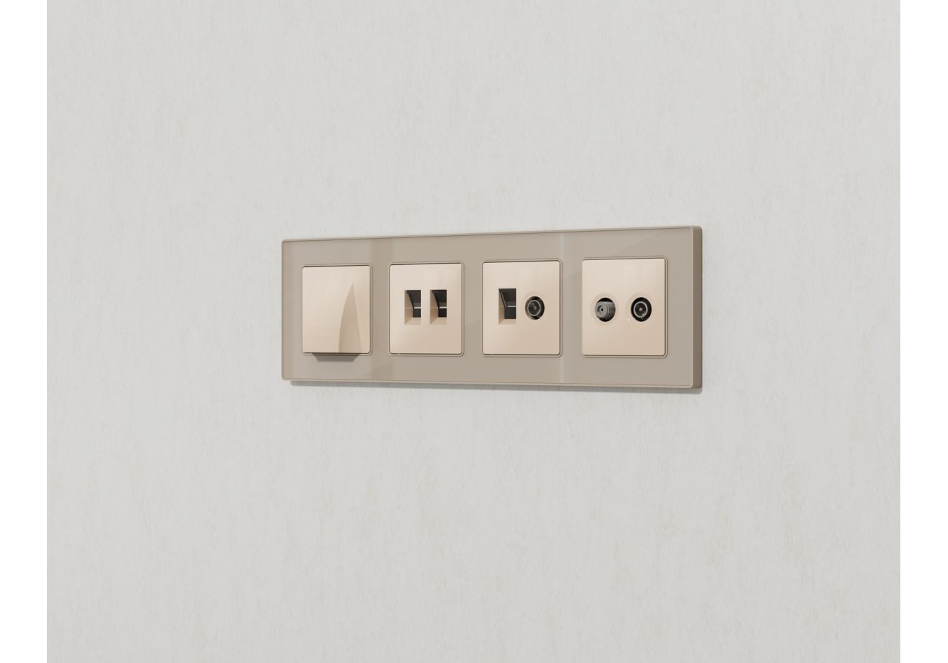 Лицевая панель Alfa (Бежевый глянец) для компьютерной/телефонной + TV розетки RJ-45/RJ-11 Quant Ambr