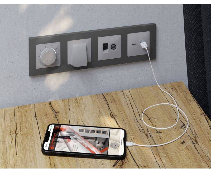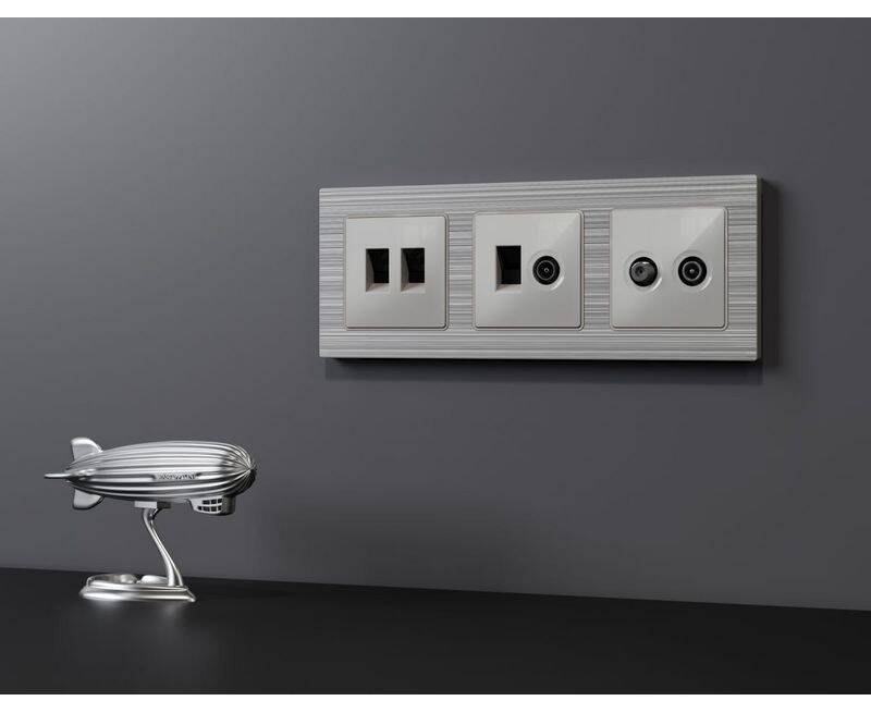 Лицевая панель Alfa (Серебро глянец) для компьютерной/телефонной + TV розетки RJ-45/RJ-11 Quant Ambr