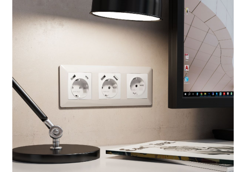 Лицевая панель для розетки с/з со шторками 2USB A+A Ambrella Volt Alfa AP1290