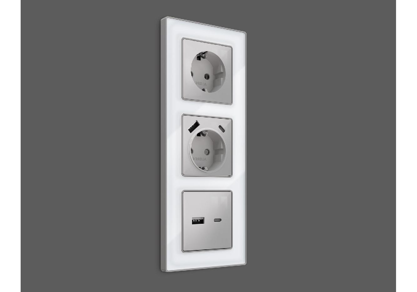Лицевая панель для розетки с/з со шторками 2USB A+C Ambrella Volt Alfa AP4100