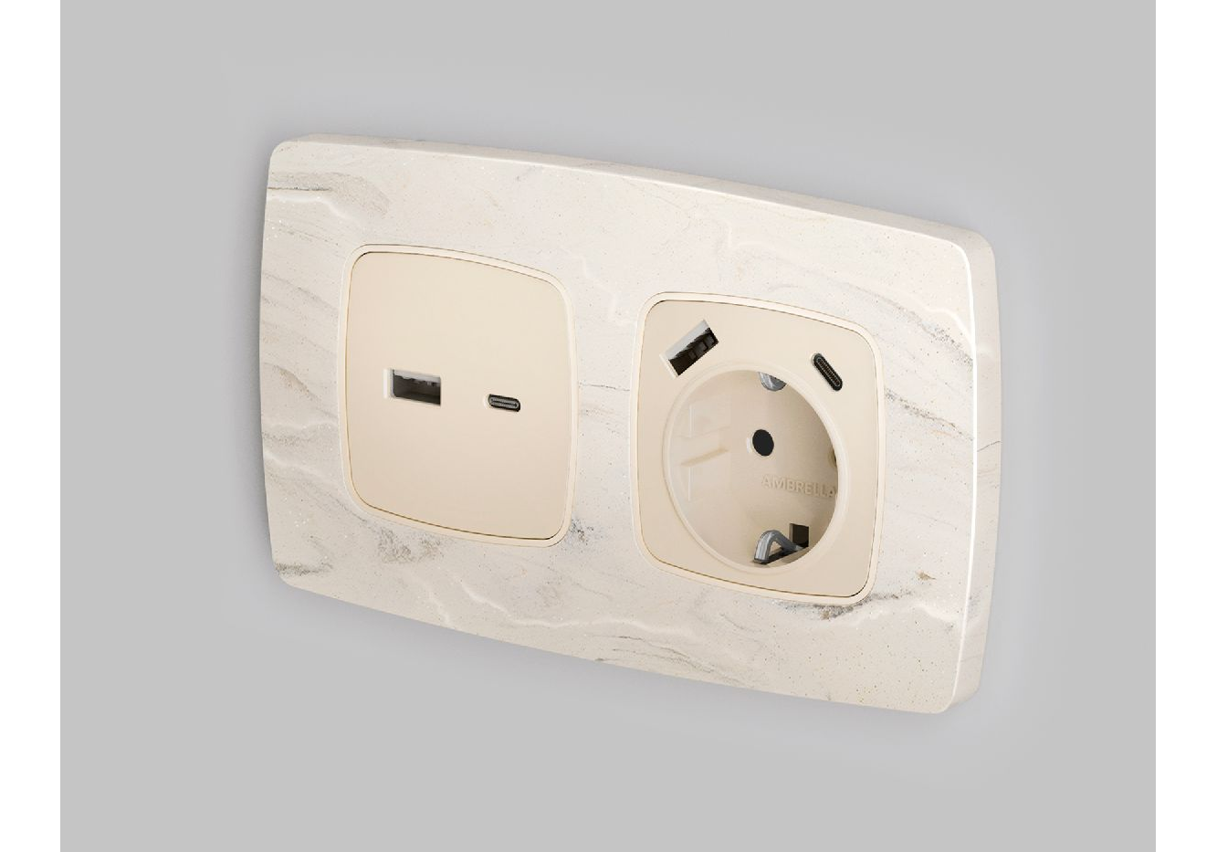 Лицевая панель для розетки с/з со шторками 2USB A+C Ambrella Volt Omega OP3100