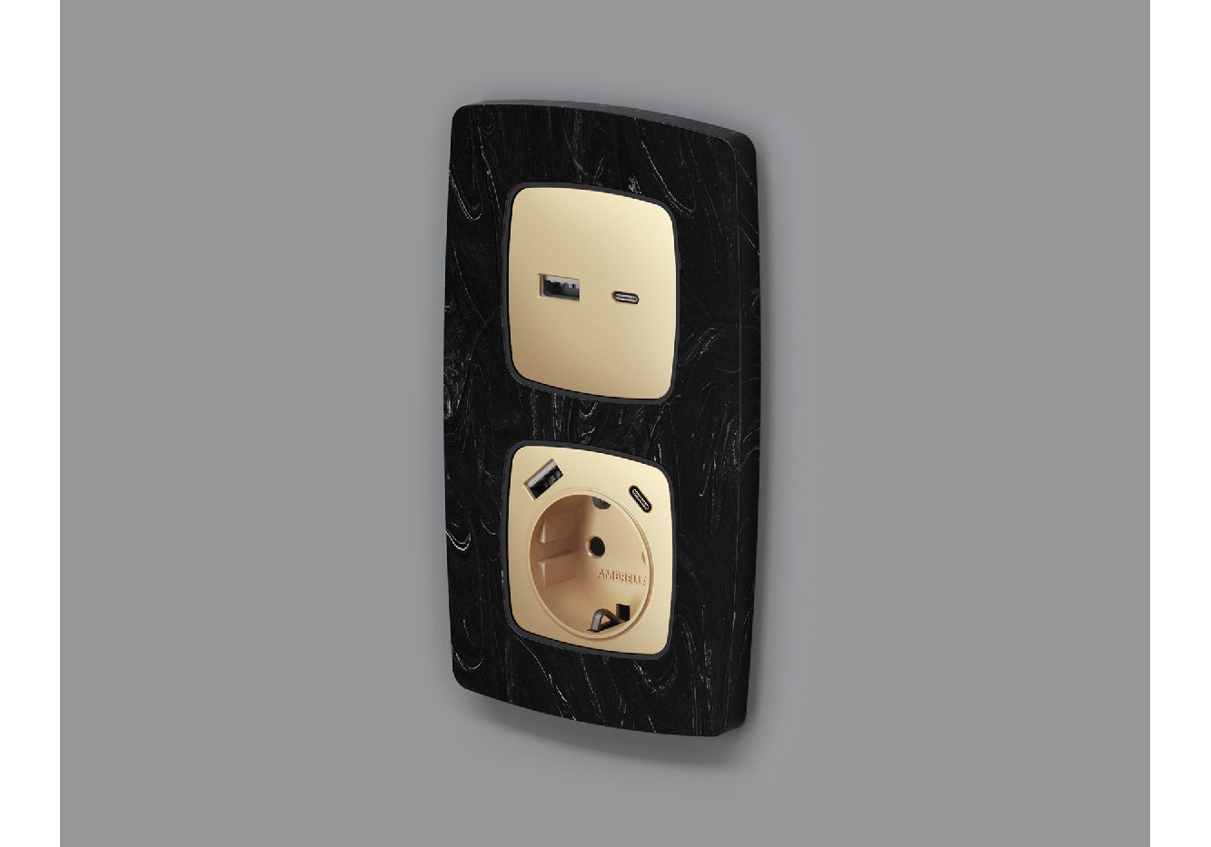 Лицевая панель для розетки с/з со шторками 2USB A+C Ambrella Volt Omega OP6100