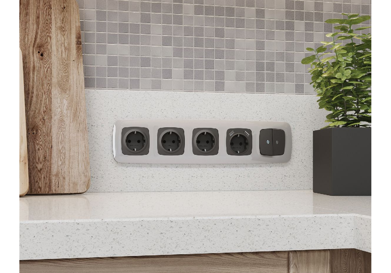 Лицевая панель для розетки с/з со шторками Ambrella Volt Omega OP9070