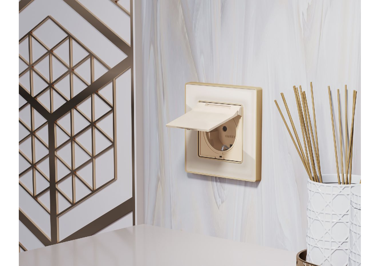 Лицевая панель для розетки с/з со шторками и крышкой Ambrella Volt Alfa AP3280