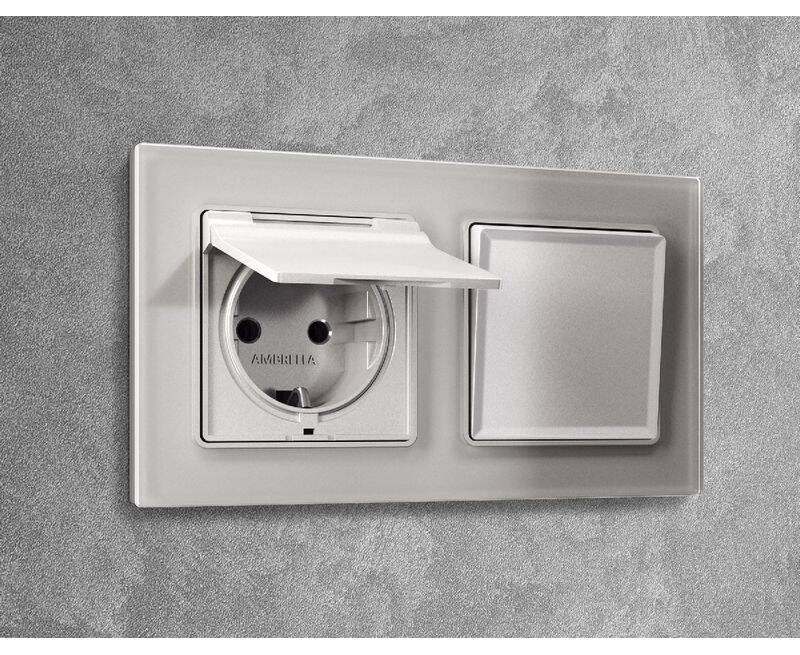 Лицевая панель для розетки с/з со шторками и крышкой Ambrella Volt Alfa AP4080