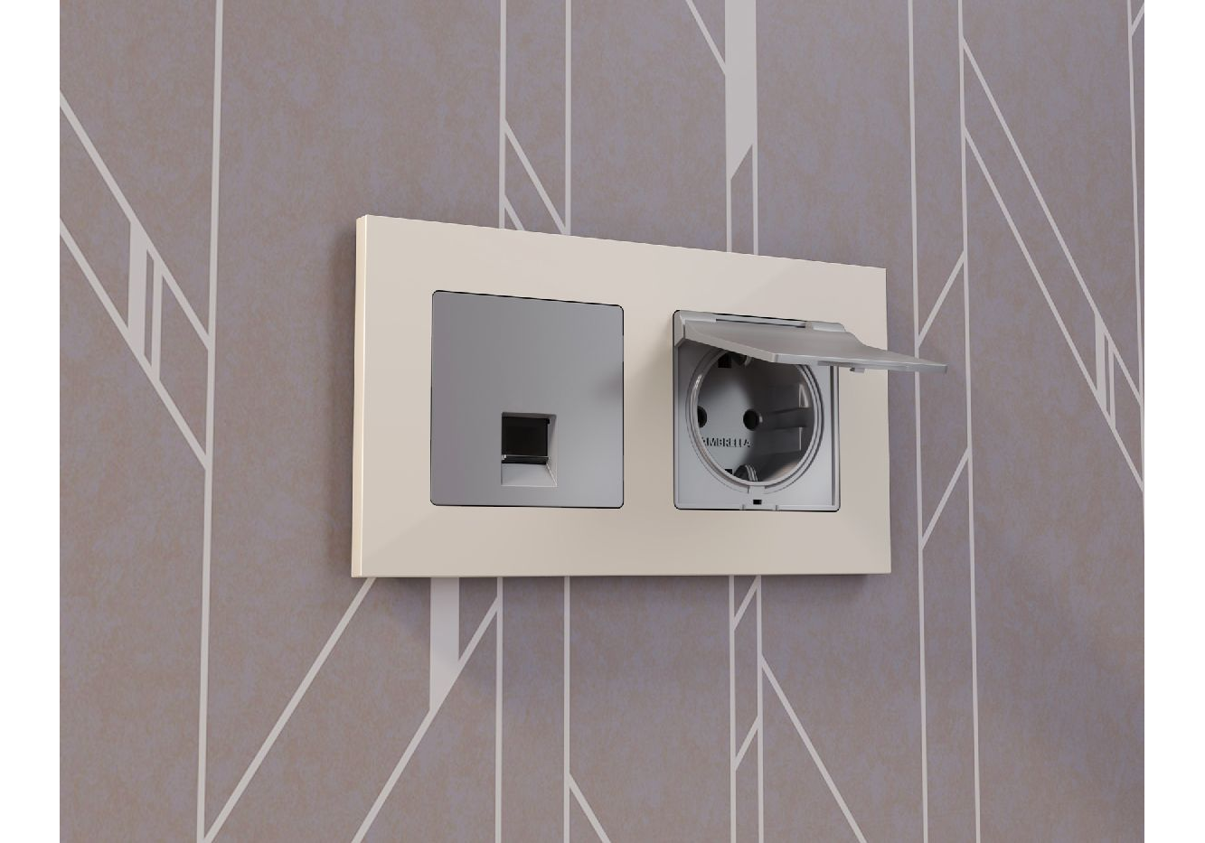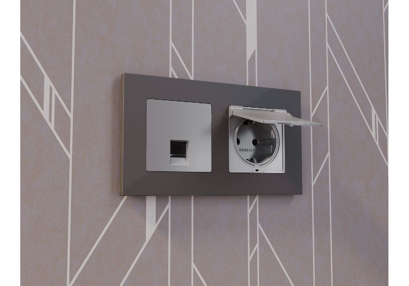 Лицевая панель для розетки с/з со шторками и крышкой Ambrella Volt Alfa AP5080
