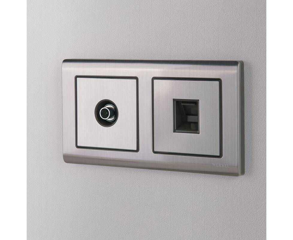 Лицевая панель Werkel розетки RJ45 и RJ11 глянцевый никель WL02-RJ-CP 4690389100406