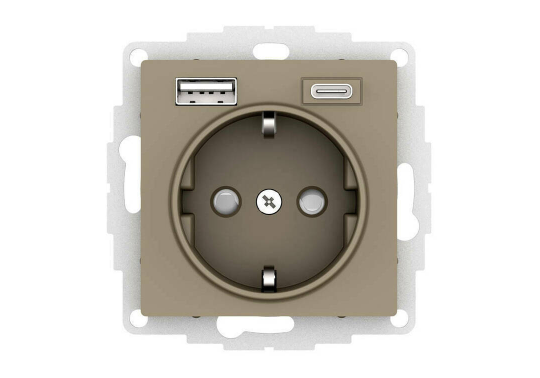 ATLASDESIGN РОЗЕТКА 16А c 2 USB A+C, 5В//2,4А//3,0А, 2х5В//1,5А, механизм, ШАМПАНЬ