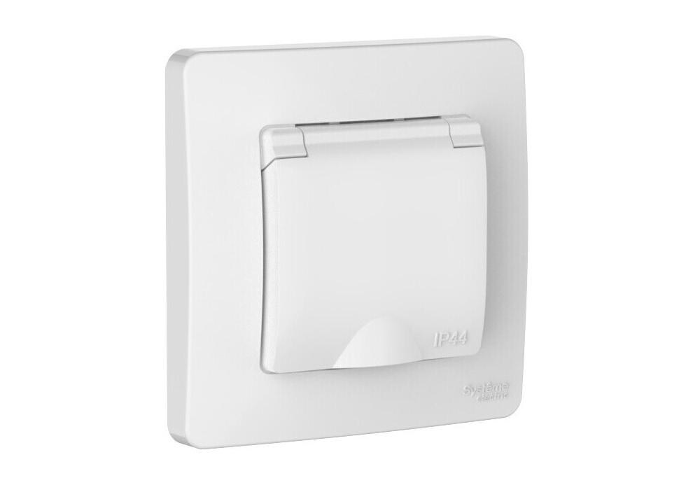 BLANCA С//У IP44 РОЗЕТКА с заземл. со шторк., с крышкой, 16А, 250В, БЕЛЫЙ