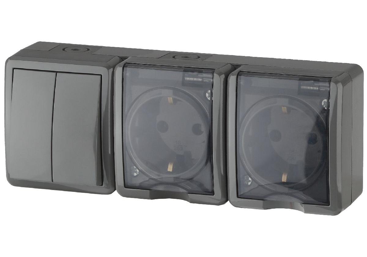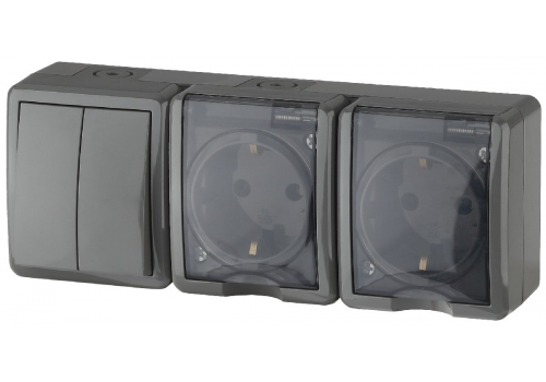 Блок две розетки+выключатель двойной Эра 11-7404-03 Б0027676