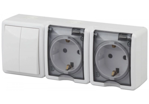 Блок розетки-выключатель двухклавишный ЭРА Эксперт IP54 16A 250V 11-7404-01 Б0027675