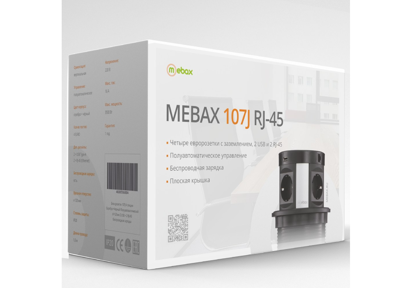 Блок розеток 107J (4 секции, 2 USB и RJ-45) Mebax 00-00001466