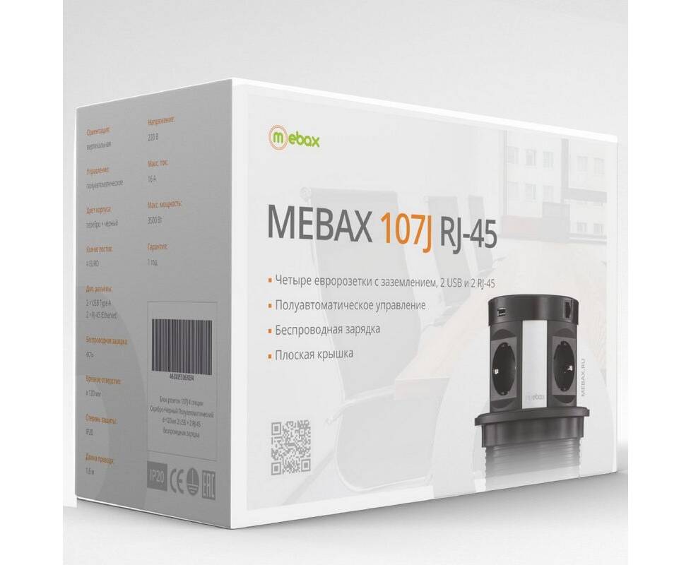Блок розеток 107J (4 секции, 2 USB и RJ-45) Mebax 00-00001466