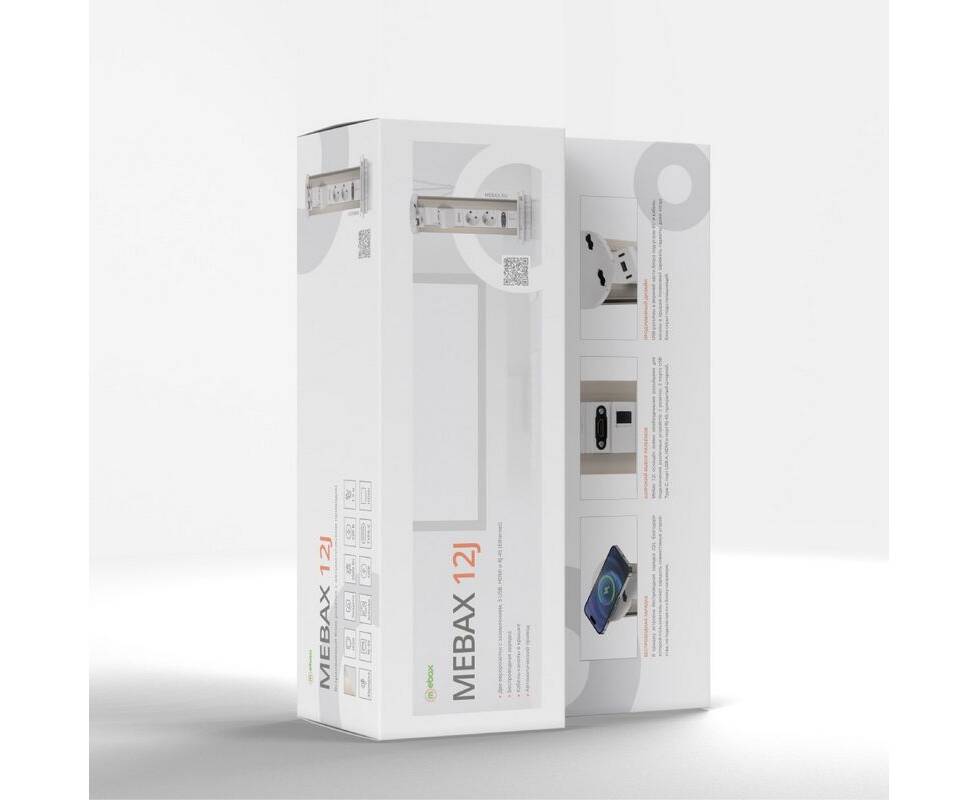 Блок розеток 12J (2 секции, USB type A+C + RJ45 + HDMI) беспроводная зарядка Mebax 00-00002598