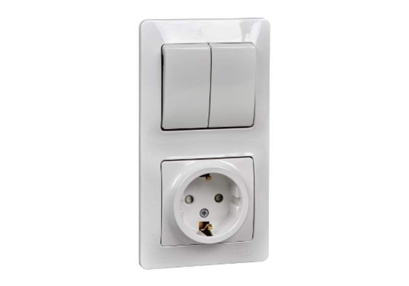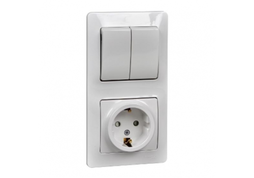 Блок: выключатель 2-клавишный и розетка Systeme Electric GLOSSA, скрытый монтаж, белый
