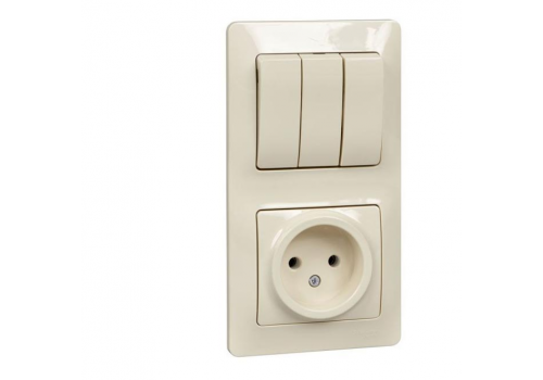 Блок: выключатель 3-клавишный и розетка Systeme Electric GLOSSA, скрытый монтаж, бежевый