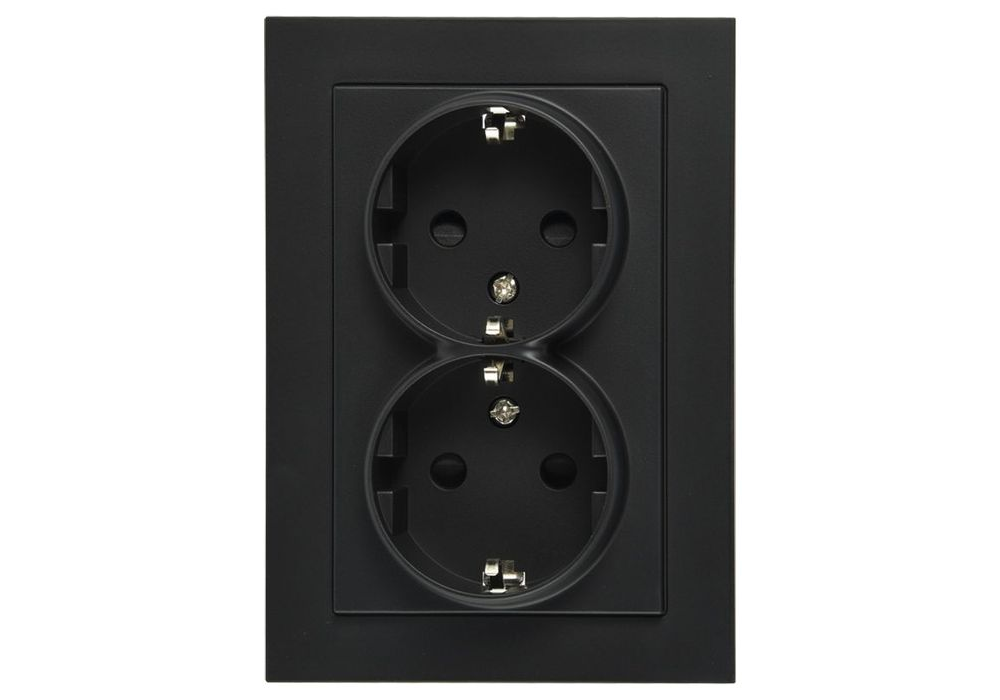 Двойная розетка SHUKO Jasmart с защитными шторками черный матовый (soft touch) 16A 250V 2P+T G5504PB