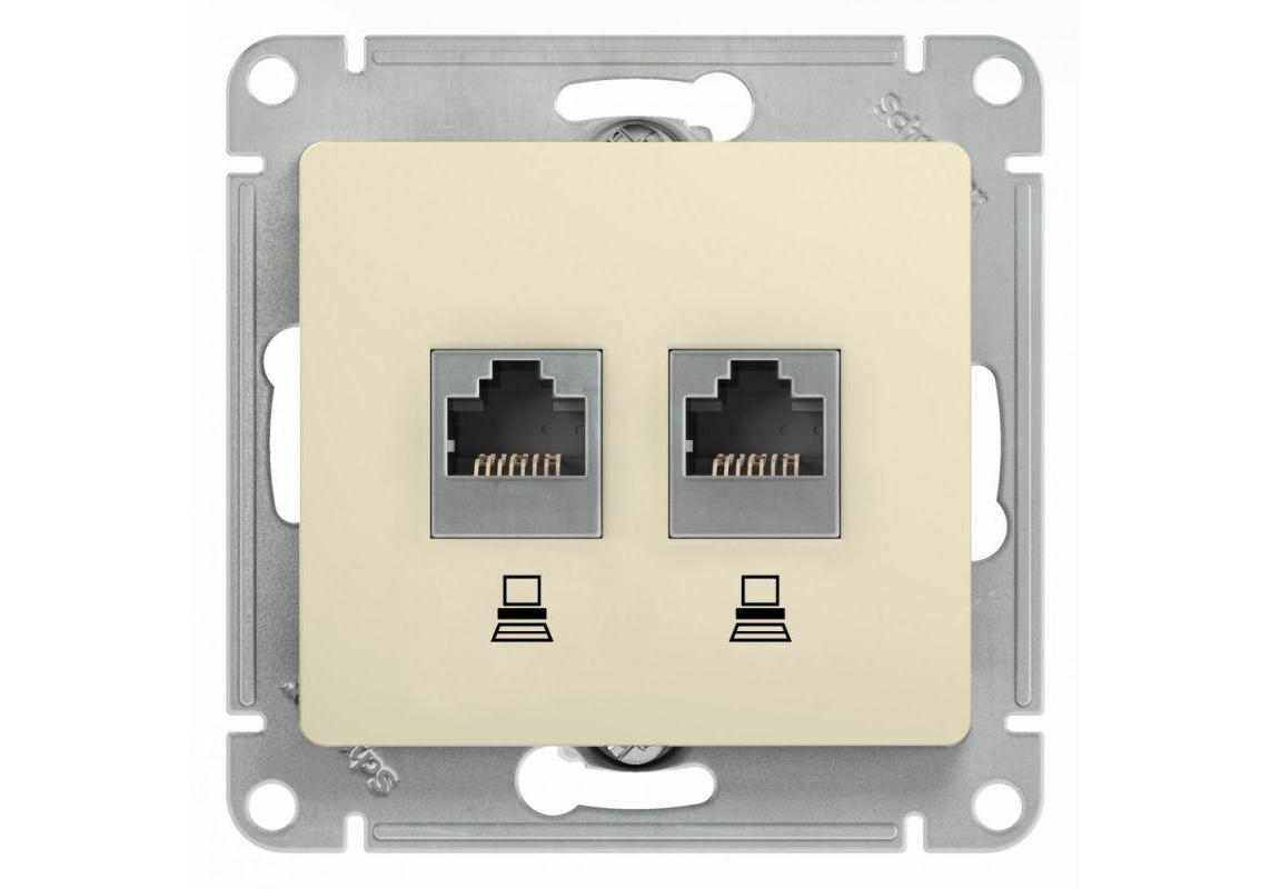 GLOSSA РОЗЕТКА двойная компьютерная RJ45+RJ45, кат.5E, механизм, БЕЖЕВЫЙ