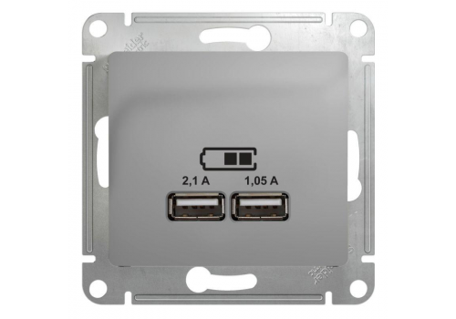 Glossa Розетка USB, 5В/2100мА, 2х5В/1050мА, алюминий