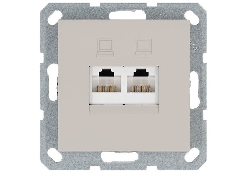 Интернет розетка 2х терминальная 6 категория, цвет тауп Jasmart G6108T